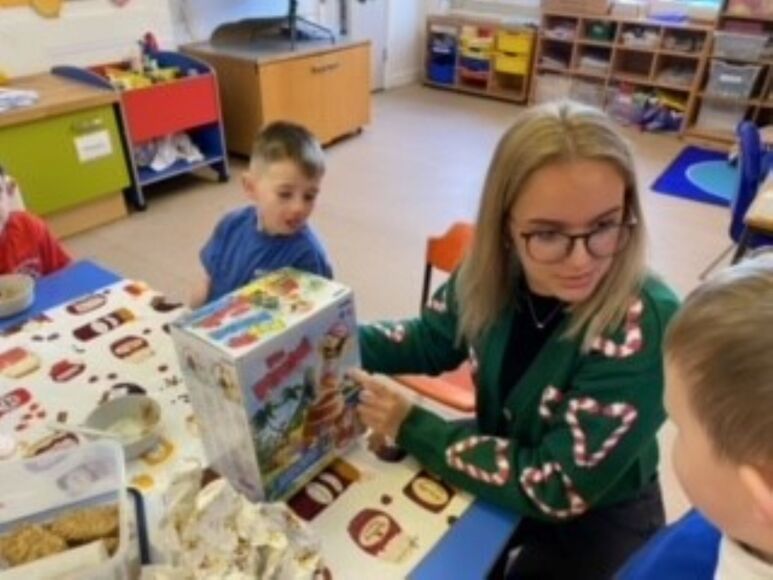 Year 1 and 2 were lucky enough to have a visit from magic breakfast this half term. We were able to choose our breakfast and ate it together at the tables. Santa sent some helpers from Quakers and Magic breakfast to bring us some early Christmas gifts. We are so lucky. We were given a giant Snakes and Ladders, Uno, Pop-Up Pirate and lots more. The best part of the morning was playing these games with our visitors. Thank you!