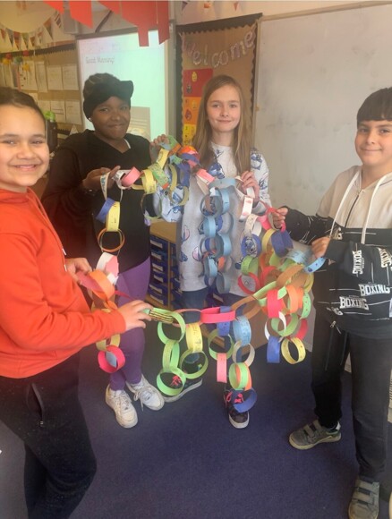 This half term, we celebrated Safer Internet Day, which is linked to our PSHE topic. We looked at what to do to keep ourselves safe in a range of different situations we might face, including a pop-up advert or in-app purchase. This comic, which was turned into a poem, shows the situation. The Year 6 children also had a fantastic time being role models and helping Adrian Patrick for Team Super Schools. Lastly, we have celebrated Children’s Mental Health Week and Move Outside. We created a paper chain representing ourselves and the people we trust. This showed us how we are connected.