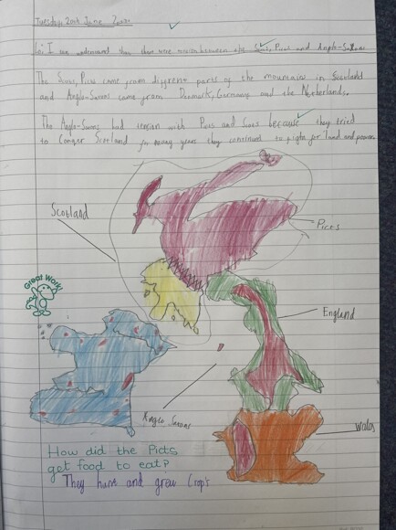 We explored the Anglo-Saxons this term and found out that they came from many places all over Europe including Denmark, Germany and the Netherlands. We researched why they invaded Britain, exploring a Saxon Burial Ship and learning more about Sutton Hoo. We particularly enjoyed finding out why there were tensions between the Scots, Picts and the Anglo-Saxons and why the Saxons wanted to conquer Scotland. We also enjoyed writing phrases using the Ogham language that the Picts used.