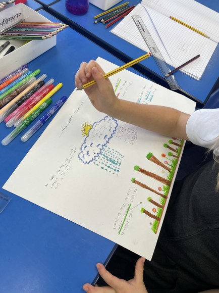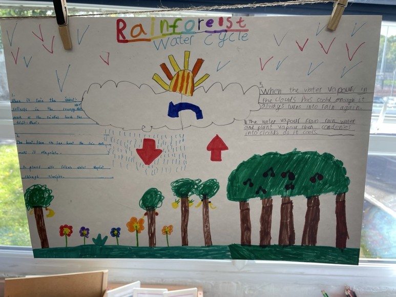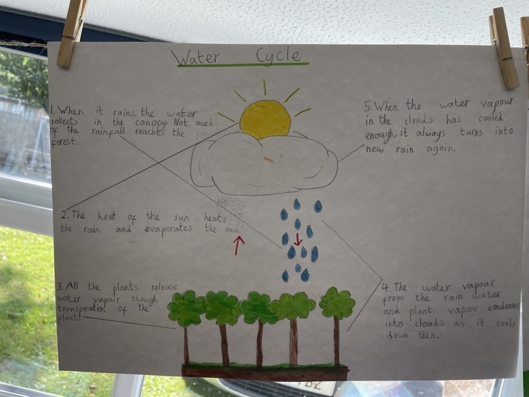 In geography, we have been studying the Rainforest. The climate that can be found in these areas to the traditional tribes that have been living there for thousands of years. We closely looked at the water cycle in the rainforest and we enjoyed working in groups to carefully design our posters on the water cycle and explaining the steps in assembly.