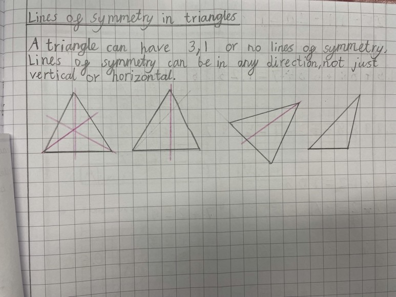 In maths, we have been looking at geometric reasoning and number sense. We have looked at a range of angles, identifying the types of angles and finding the degrees using protractors. We expanded our math knowledge on angles, quadrilaterals and types of triangles and we looked closely at each of their features. Year 4 enjoyed using mirrors to find line of symmetry on their 2D shapes and explaining why each of these shapes had even or uneven lines of symmetry!