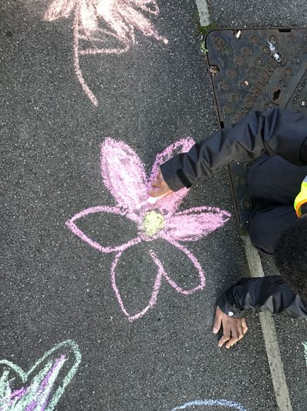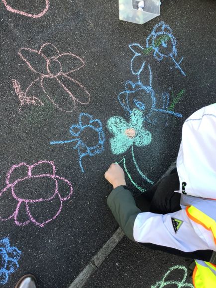 We were greeted by a lovely lady Tina that welcomed the Year 4 in and explained what she does to help the community. She showed us her kitchen where she prepares food and showed us the fresh produce that gets donated to her café. The donated food gets made into hot meals that Tina then serves to the community on days that they might not be able to afford a dinner. We were met by 2 other ladies that helped Tina to pack food bags for families in need. It was wonderful to see that our community care so much about each other. Our trip ended in Tina’s outside community garden where we explored all the types of fresh produce she is also growing in her garden and we were able to touch and smell. We were able to decorate the sidewalk in lovely chalk blossoms to cheer up the local community and were treated with a lovely cup of Hot Chocolate! Thank you, Tina!