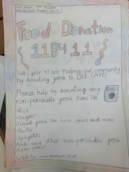 For our 11B411 10 good deeds week, Year 4 collected food for our local café. Thank you for every single donation that we received! Dee Caf turns into a community fridge on Wednesdays that help families in need.