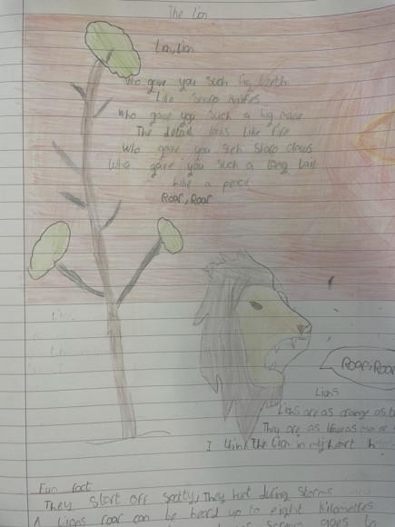 We have been looking at Poetry this term and all the language features needed to create a poem. Some of the language features that we looked at were onomatopoeia, alliteration and similes to write our poem.