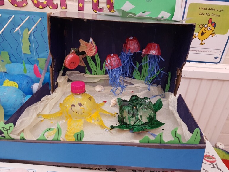 The children have produced some spectacular ‘under the sea’ models using recyclable materials.