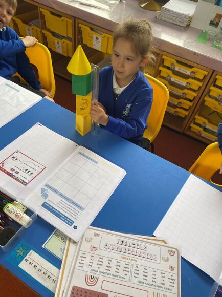 In maths the children have practiced a range of skills. We have looked at telling the time to the hour, as well have partitioning numbers into their values. The children have needed to look carefully at the number and see how many tens are in a number as well as how many ones are there. The children thoroughly enjoyed looking at 3D shapes and talking about the different properties. We challenged them to see who could build the biggest tower using only four shapes and which shapes would best suit this.