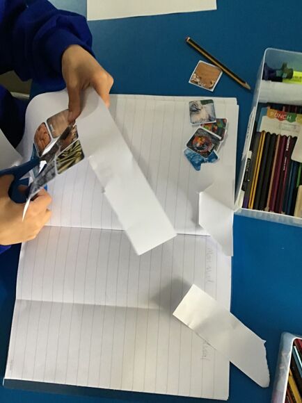 In English we worked to create poems as well as postcard. To begin with we looked at Pie Corbett's poem ‘ A recipe to make a wolf’. We created actions and a text map to help us remember it. We then created our own poems using metaphors and alliteration. Finally, we learnt how we should perform our poems and read them aloud to the class.