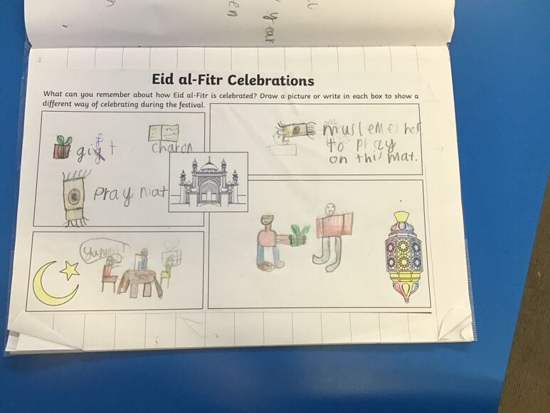 Year 2 have enjoyed learning about Muslim celebrations in RE this half term. We have lots of children that follow the Islam faith and they have enjoyed sharing their experiences with the class. We began this topic by thinking about all the different celebrations we know and what we each celebrate. We then went on to learn about the difference between Eid-al-Fitr and Eid -al- Adha. Mrs Tahir was a great help in sharing her experience of fasting and what this means during Ramadan.