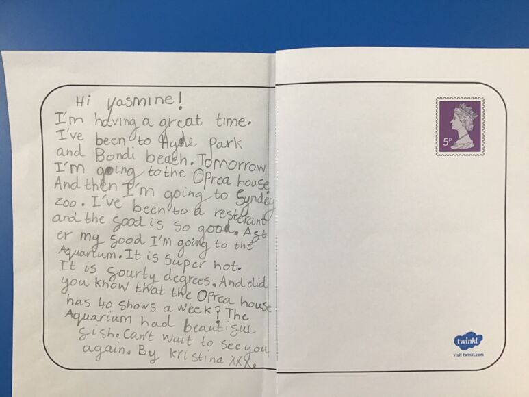 We were delivered lots of postcards from staff telling us all about the different places they have travelled and what they are like there. We used these as a model to write our own postcards from Australia. We learnt how postcards use an informal tone and often use contractions.