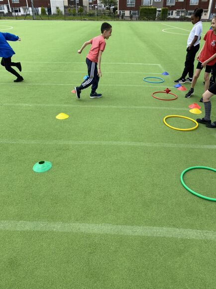Year 5 and 6 have been practicing sports day races. Ladders, hurdles, Tennis ball balance on the tennis racket, Baton, Bean bag throw.