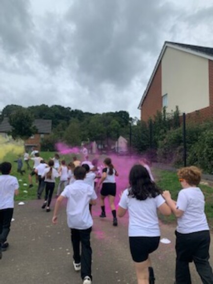 Finally, Year 6 had a fantastic time completing their Colour Run. We were covered in a rainbow of colours! We also had a special day on World Mental Health Day, wearing yellow. We talked about different emotions you might feel and what might make us feel that way. We had lots of ideas about what makes us feel positive, calm and happy!