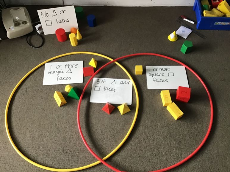 As well as this we have been deepening our understanding of 3D shapes. We have been looking at the faces and identifying what 2D shapes they have. We have also been exploring making patterns with shapes and trying to predict what the 10th shape will be.